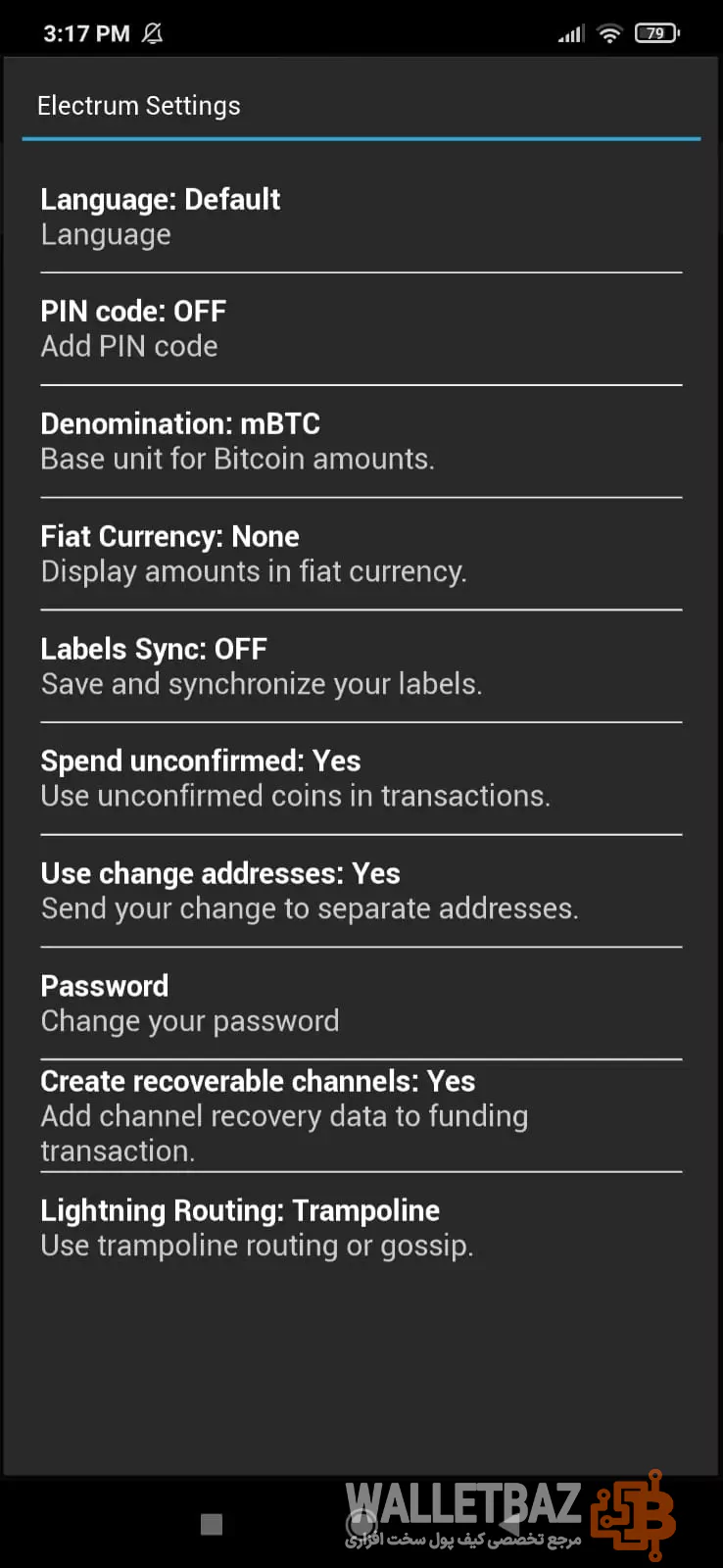 - رمز عبور: میتوانید رمز عبور کیف پول خود را از اینجا تغییر دهید.