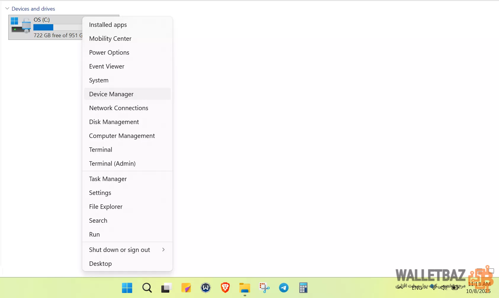 - روی منوی استارت راستکلیک کنید و Device Manager را انتخاب کنید.